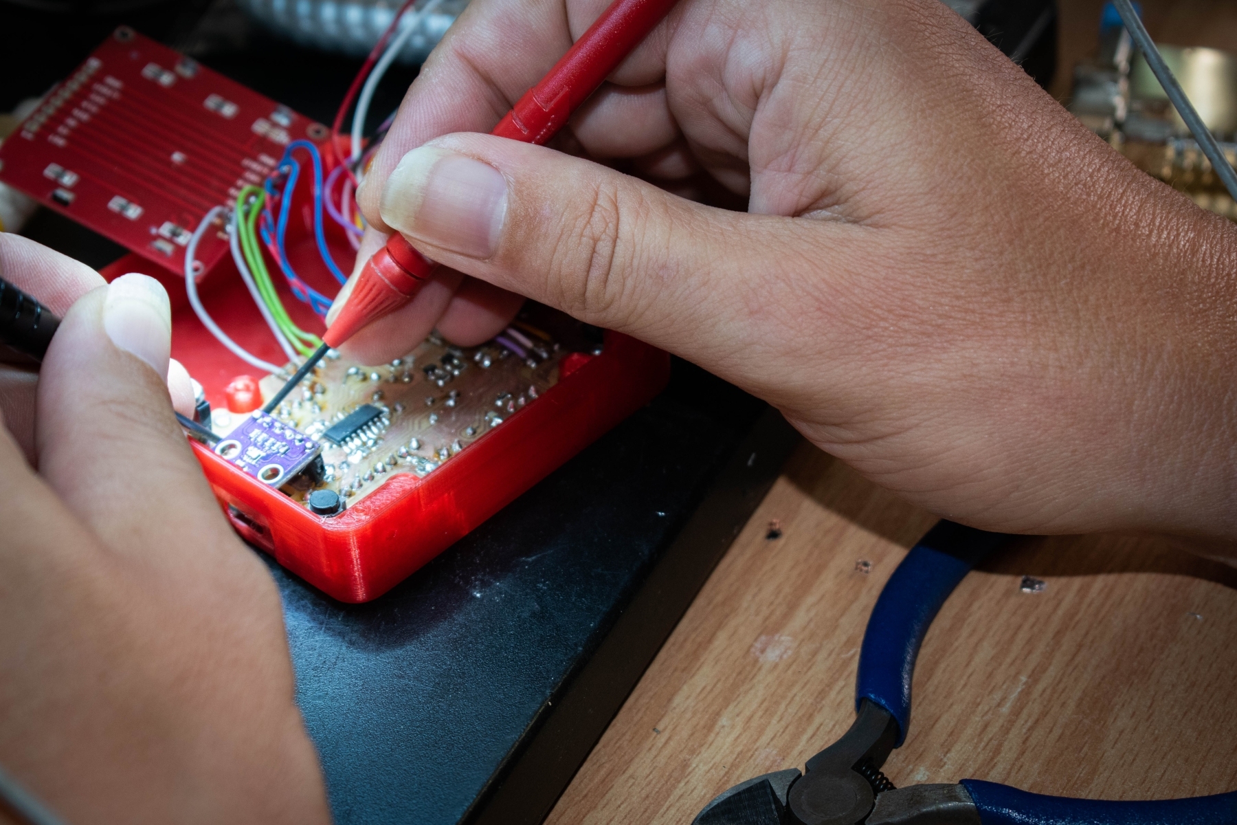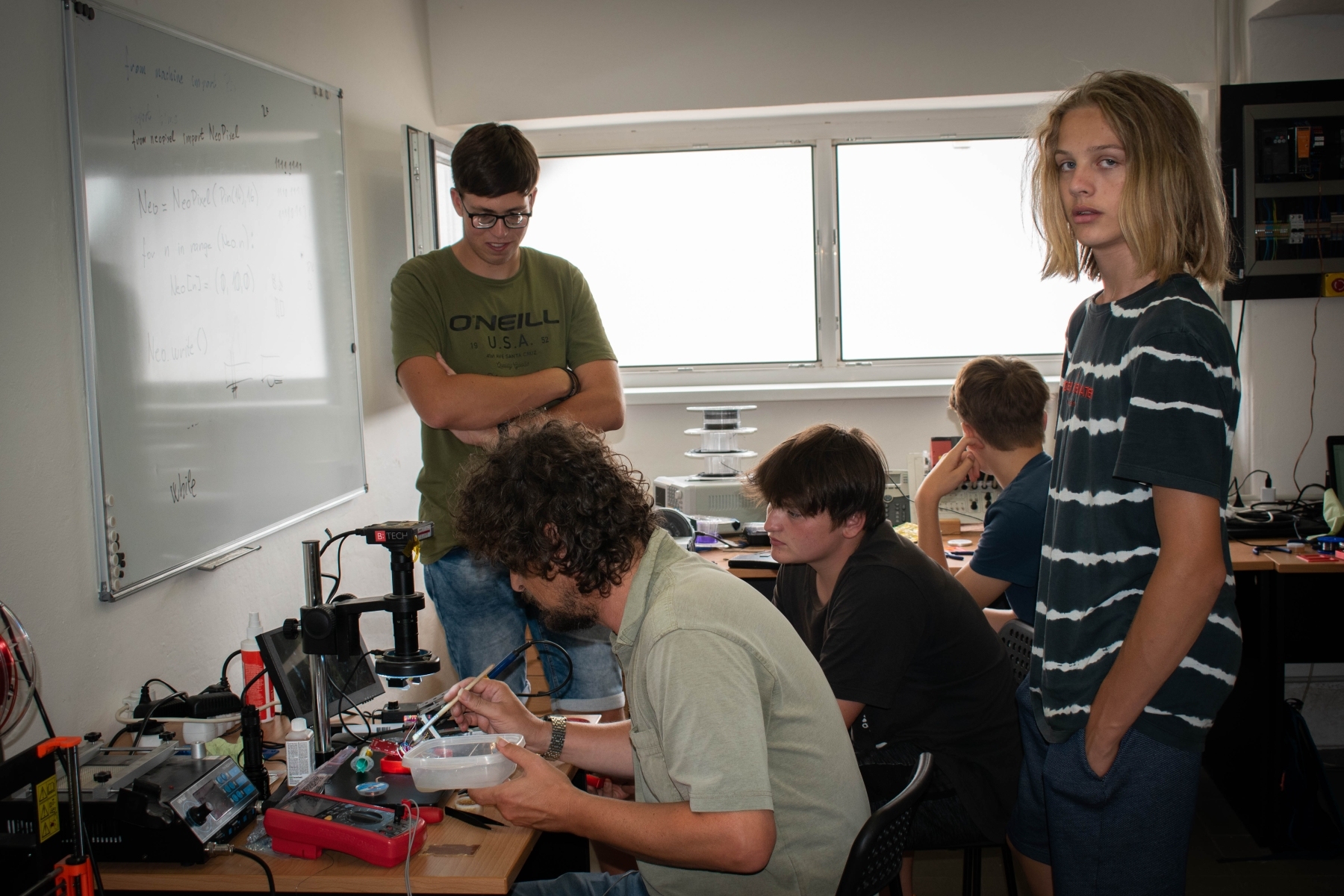 Během práce na dálkově řízených vozítkách si naši účastníci procvičili 3D tisk, návrh, výrobu a osazení DPS a tvorbu softwaru. Skupina začátečníků absolvovala základní cvičení zaměřená na bezpečnost, zapojování a návrh a výrobu DPS včetně jejího osazení.
